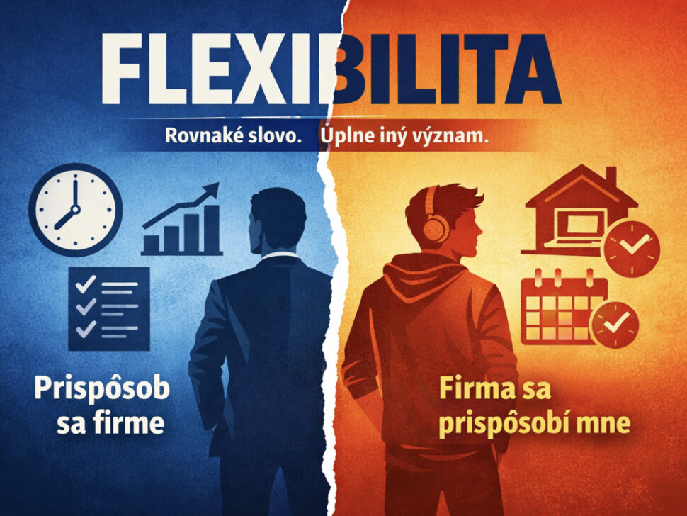 Z pohľadu firmy je to legitímna potreba. Každá organizácia potrebuje ľudí, ktorí dokážu reagovať na zmeny a zvládať tlak. Problém však nastáva v momente, keď túto schopnosť nazývame flexibilitou.